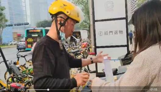 图为队员易卓凡给外卖员送水。中青网易卓凡供图