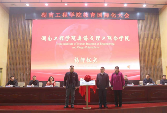 会议举行湖南工程学院奥塔戈理工联合学院揭牌仪式。该学院的成立,标志着学校中外合作办学进入了机构化、实体化运行的新阶段,将成为融合中新工程教育优势、创新人才培养模式的重要平台。